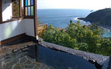 Feel the warmth of the sun and soak in the hot springs at Shimoda’s hotel Gardenvilla on Izu peninsula, on a cliff overlooking both beach and bay.