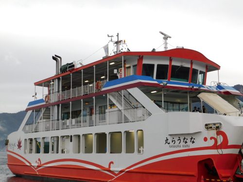 Zum Fährhafen laufen Sie keine fünf Minuten und sollten Sie im Besitz eines JR Passes sein, können Sie die Fähre kostenfrei nutzen, da diese zur West Japan Railway Gruppe gehört. Ansonsten kostet eine einfache Fahr für Erwachsene 180 Yen. Es besteht auch die Möglichkeit Autos, Motorräder oder Fahrräder mit an Board der Fähre zu nehmen, für die Sie noch einmal extra zahlen müssen.