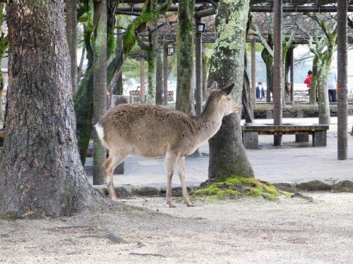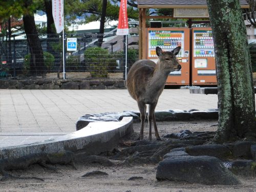 Wenige Minuten später erreichen wir auch schon Miyajima und verlassen die Fähre, nur um direkt von den Einwohnern Miyajimas begrüßt zu werden – Rehe. Diese werden auf Miyajima Ihr ständiger Begleiter sein!