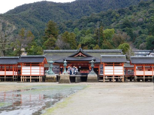 Der Itsukushima-Schrein bei Ebbe und Flut