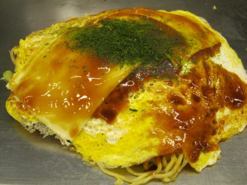 Ich frage den Küchenchef, ob er mir ein vegetarisches Okonomiyaki im Hiroshima-Style zubereiten kann, was gar kein Problem darstellt und während er vor meinen Augen das Okonomiyaki zubereitet, reden wir ein wenig über meinen kleinen Ausflug.