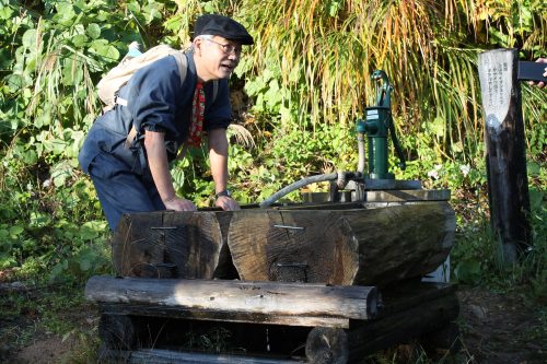 Zwar kann man im Brunnen auf dem Hayama-Wanderpfad nicht durch das eiskalte Wasser schreiten, allerdings kann man seine Arme in das Wasser tauchen. Auch dies fördert bereits den Kreislauf und die Durchblutung. Viele der Senioren machen dies auf dem Weg zum Gipfel.