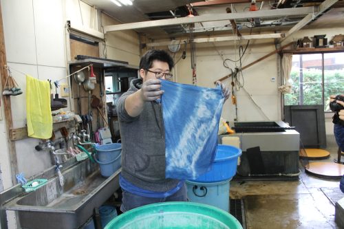 Am Morioka Handi-Works Square kann man auch dabei zusehen, wie Stoffe mit traditioneller Indigofarbe gefärbt werden. In den Boden der Färberei sind Wannen eingelassen, die mit der Indigofarbe gefüllt sind. In diesen werden die Stoffe gefärbt. Dafür taucht der Färber die Stoffe vier- bis fünfmal am Tag in die Farbe.