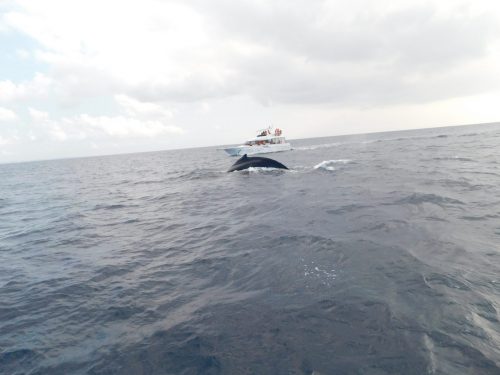 Und so verfolgen wir den Wal gut eine Stunde lang, bevor es ein letztes Mal Flosse heben heißt und wir ihm “Auf Wiedersehen“ sagen, um uns auf den Rückweg zum Hafen von Naha zu machen.