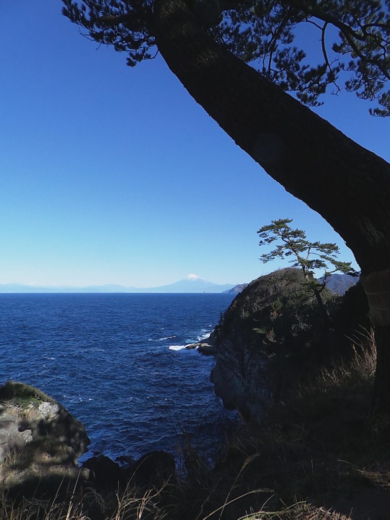 Bevor ich mich wieder auf den Weg machte, schlenderte ich durch das Dorf. Das Wetter war wirklich großartig! Ich bewunderte den Berg Fuji vom Strand und ich erklamm den Berg Eboshi in der Nähe (162 Meter hoch). Auf der Spitze fand ich den Kumomi Sengen Schrein (雲 見 浅 間 神社) und einen atemberaubenden Blick auf die Bucht (und Berg Fuji wegen des sonnigen Wetters).