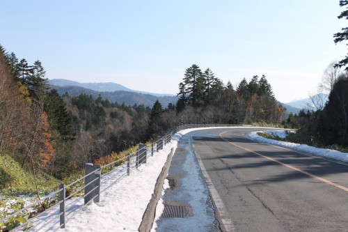 On the way there, I took Route 391 to Nogami Pass (野上峠) and then Route 102 to the Highland Koshimizu 725 (ハイランド小清水725). I arrived in Hokkaido at the tail-end of autumn so, as I climbed higher, it was starting to look more like winter. However, please note that the Highland Koshimizu is only open from May to October.