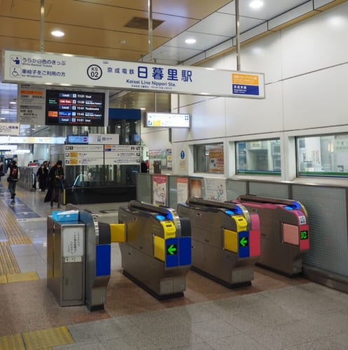 Para empezar tu ruta tienes que bajarte en la estación de Nippori. Desde el aeropuerto de Narita, la línea Keisei te dejará allí en 36 minutos con el tren Skyliner. Una vez allí, toma la salida sur y pasa por un puente donde hay aficionados a los trenes observando las vías del tren.