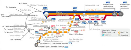 Le moyen le plus sûr et le plus rapide de rejoindre le nord de Tokyo est d’emprunter la ligne Skyliner, gérée par la Compagnie Ferroviaire Keisei.