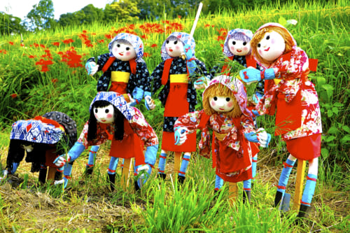 L’un de ces sentiers est surnomé “かかしロード” (kakashi road), la “route des épouvantails”, car un concours d’épouvantail s’y déroule chaque automne.