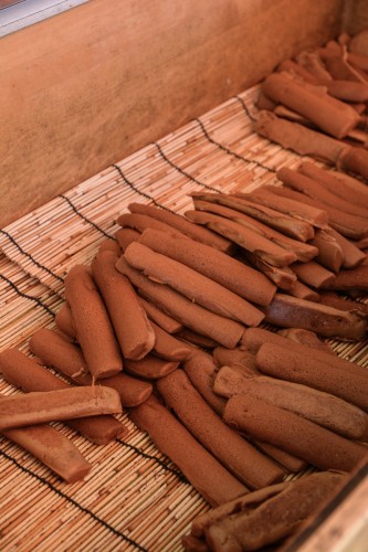 Situé dans le quartier appelé Old Choninmachi qui rassemble de nombreuses maisons de ville utilisées par les commerçants ou les résidents, cette maison est une des plus connues de la rue. Vieille de plus de 130 ans, la boutique Kikkawa est mythique à Murakami du fait qu’une star japonaise ait posée devant mais pas que, la boutique est là depuis 15 générations. Dès qu’on rentre, il y a une partie boutique où l’on vent tous des produits à base de saumon principalement. Au fond de la boutique, 1000 saumons sont accrochées la tête en bois en train de sécher, avec toujours un courant d’air indispensable et nécessaire pour laisser sécher le poisson. C’est la technique du saumon shiobiki, la spécialité de la ville de Murakami. On vient donc suspendre le saumon une fois évidé et salé.