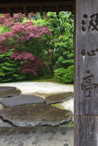 Avant de déguster votre wagashi et votre thé matcha, le maître du thé vous présente la peinture ou calligraphie et l’ikebana (arrangement floral). Disposés dans le tokonoma, la petite alcôve d’exposition, les deux éléments sont censés représenter la temporalité des saisons et de la nature. Appréciez l’esprit minimaliste de l’architecture de la pièce avec ses grandes ouvertures donnant sur le jardin zen de la maison de thé.