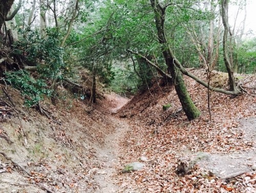 The trail’s first section is really interesting, as it’s mostly runs through a trench-like path carved into the rock. The trees overhead provide great shade from the sun.
