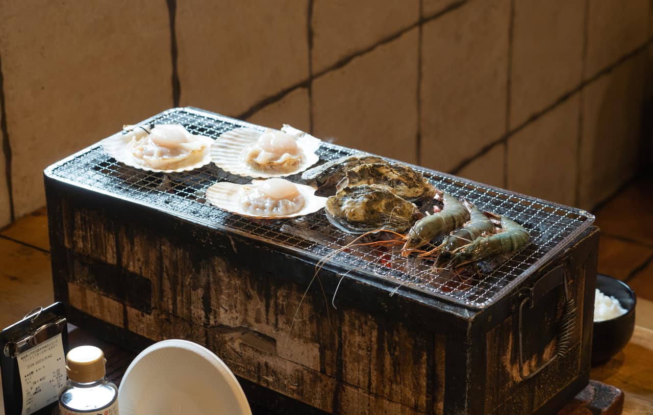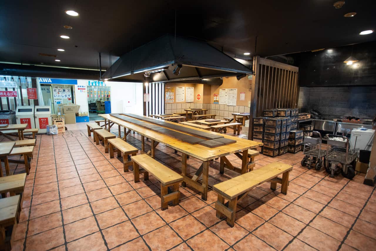 Now here are the important details. First go to the restaurant in the Hasshoku Center where you will rent out a BBQ and space at a table. After you rent your spot, go into the market and buy seafood from some of the many vendors. I found most of the variety plates to be around 1,500 yen, an absolute bargain for the amount and quality of the seafood you get. You can also buy things individually, such as fresh oysters for about 300 yen each.