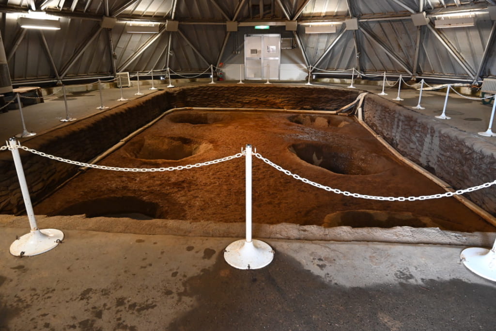 One of the most famous ruins of the Jomon period, the Sannai-Maruyama site is considered to be one of the largest and best-preserved ancient settlements in northern Japan, earning it recognition as a site of special historical importance in 2000. In 2003, 1,958 artifacts from this site were designated as Important Cultural Properties. Much has been learned about the evolution of society from studies of Jomon settlements in this part of the world. From excavated artifacts, researchers have concluded that the Jomon period was a time of transition when local people went from living a hunter-gather lifestyle, characterised by a nomadic lifestyle, to an agricultural one, settling in communities and remaining in one place. This is reflected in some of the 500 pit dwellings that were discovered at Sannai-Maruyama site, many of which show evidence of paved floors and separate areas for entertaining. The ruins cover an area of about 38 hectares, and within the ruins, there is a museum, large and small pit dwellings, and large pillar-supported buildings that look like a village from those times. Visitors are able to walk around the replica constructions and get a sense of what Jomon era life was like, as well as see excavation work. Some of the constructions are very large while others are much smaller.