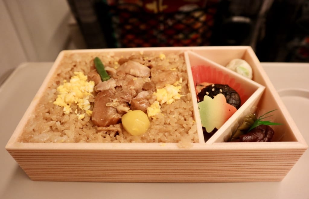 Odate is famous for Akita’s brand-name chicken, “Hinai Jidori” and the tori meshi bento include tender pieces of chicken, pickled vegetables, egg rice, simmered shitake mushrooms, and are seasoned with soy sauce and burdock root. Having traveled extensively by train in Japan, buying a lunchbox from a station vendor is part of the experience. They are always full of colour and flavour and use high-quality ingredients. The lunchbox from Odate lived up to our expectations and it was easy to see why it was so popular with commuters.