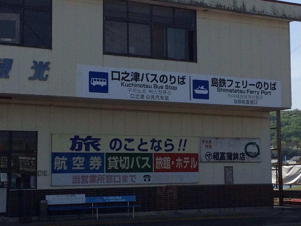 The Nagasaki ferry dock is a part of the prefecture’s Shimatetsu transportation line. We reached it by a Shimatetsu bus from the Shimabara bus terminal, a 1150 yen ride alongside the sun bridling water, beach, and the volcanic upturn to looming Mt. Unzen. Kuchinotsu town, the area by the port, is a cozy counterpart to the dramatic seaside bus route. If you take the bus for the ferry, disembark upon reaching Kuchinotsu (口之津 ) stop.