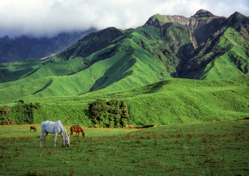One of the craters is known as Komezuka, from early summer to autumn fall it is covered with grass and has a beautiful green appearance.