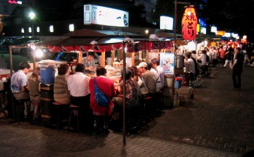 Ramen is prepared in rich broth, nabe sizzles with savory condiments, and beer froths over glasses. Come try the food of Fukuoka in outdoor restaurants.