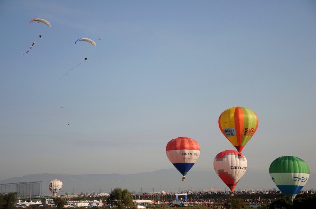 The hot air balloon festival started in 1978 in Fukuoka Prefecture, but was moved to Saga from 1980 as there was more space available. It has grown considerably since then, with ballooning teams coming from all over and many local people volunteering to help. For a short time, the quiet countryside of Saga becomes an exciting international community.