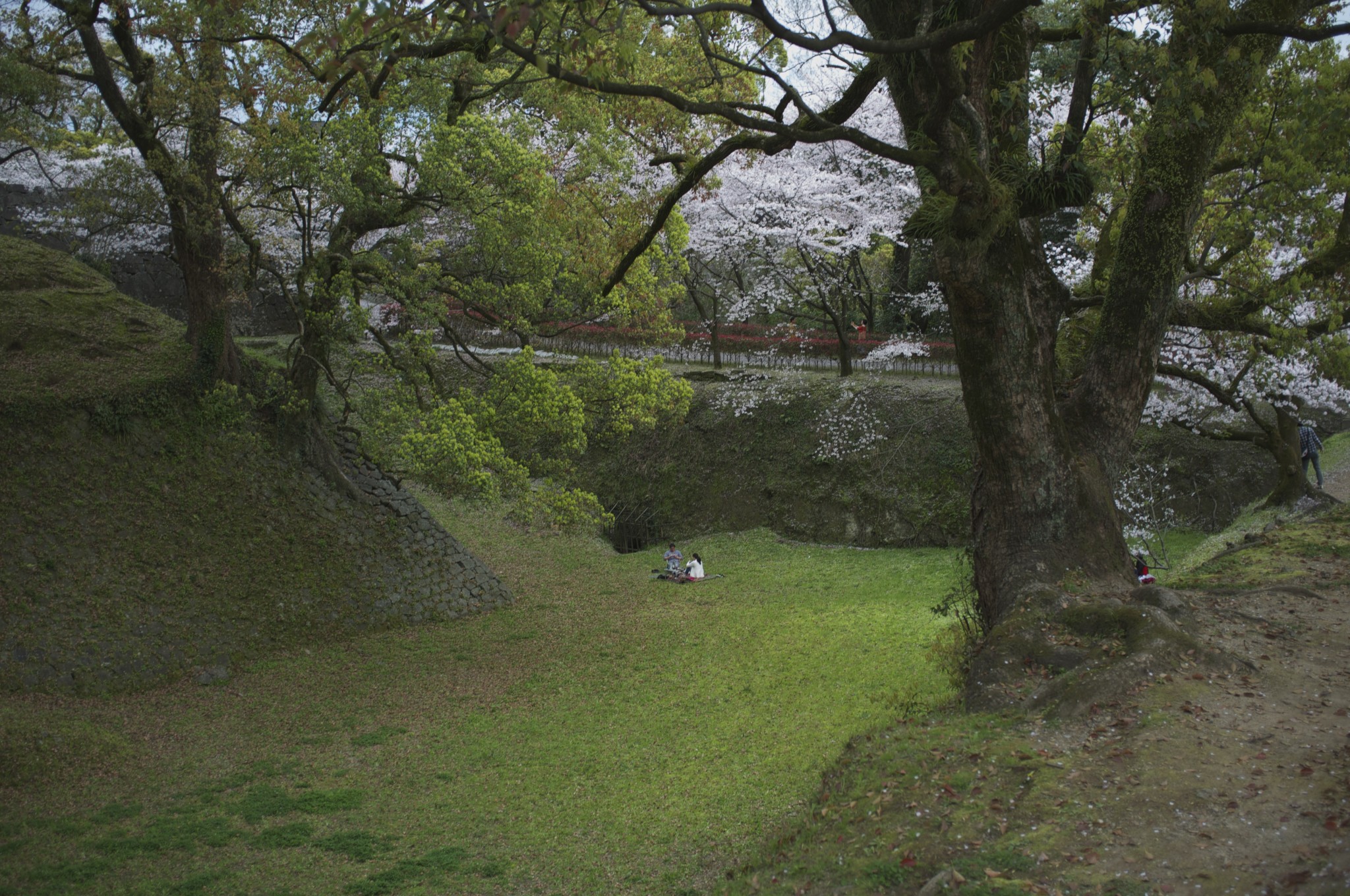 In addition to their historical significance, the castle grounds are blessed with a bounty of ideal picnicking areas. Although cherry blossoms also bloom within gardens beyond the paid-access areas of the Kumamoto castle, the prime locations for picnicking and other more leisurely hanami activities are the surrounding castle grounds, which are open to the public free of admission. The castle grounds feature no shortage of lush, grassy areas, as well as fields at higher grounds, which provide the ideal setting for an afternoon among the blossoms.
