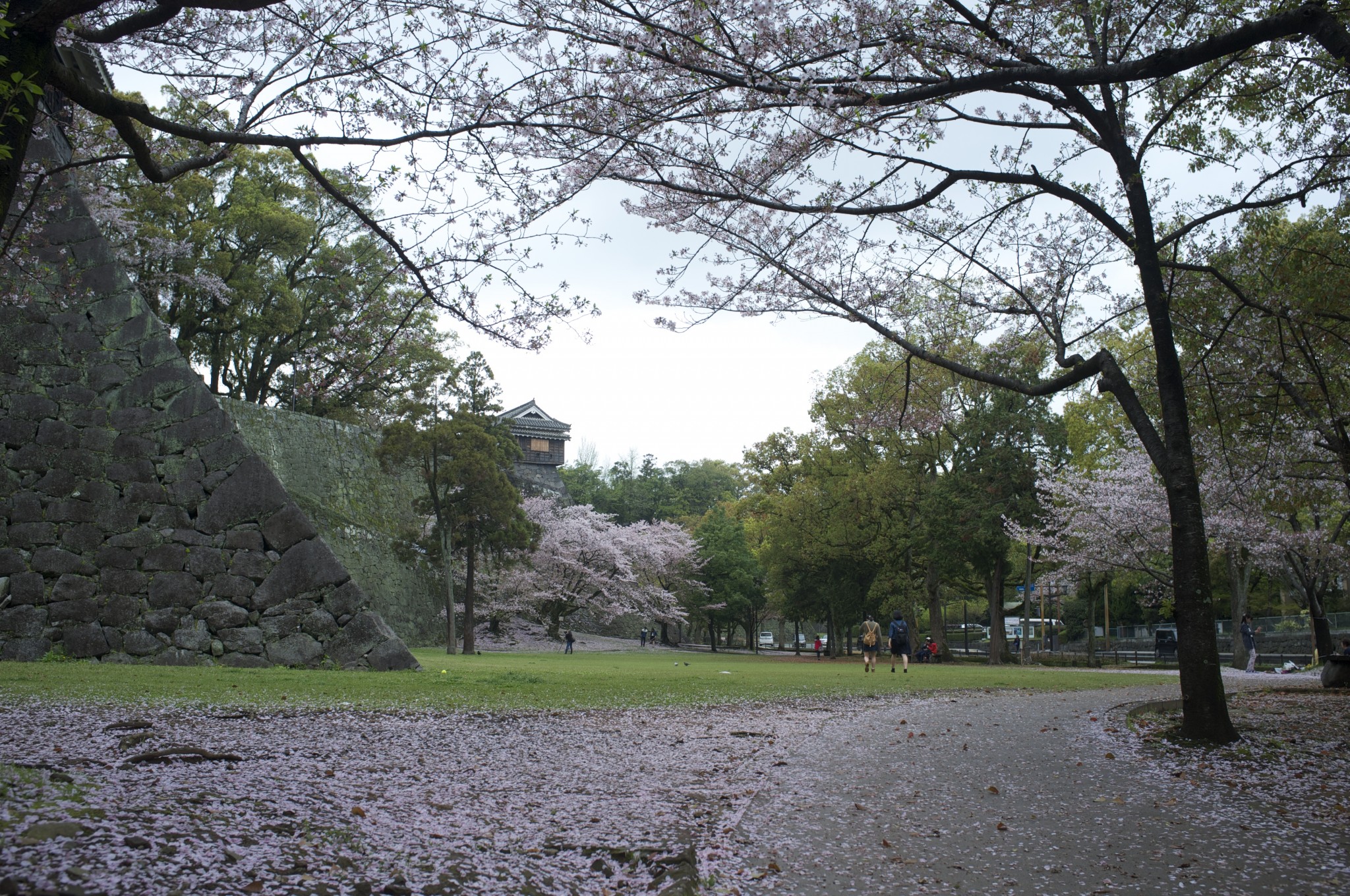 Although it only lasts a short two to three weeks, cherry blossom viewing (hanami) is one of Japan’s most famous seasonal activities. Kyushu is the first of Japan’s main islands to experience the blossoms annually, making its central city of Kumamoto a popular destination among spring breakers across Japan and internationally. Though cherry blossom trees are scattered in swaths throughout the entirety of Kumamoto City, Kumamoto Castle is regarded as the best location to enjoy hanami. Given their short bloom span, cherry blossoms (sakura) are revered in Japanese culture as a symbol of mono no aware (“the transience of things”) – a principal that emphasizes the beauty of ephemerality. What better place to celebrate this, than at a castle that has been burned down, and rebuilt from the ground up.
