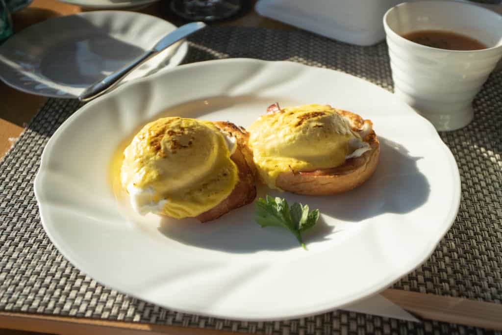 Each spacious room here has its own terrace that looks out at the harbor or Nagasaki and the resort itself has an ultra-modern design with many amenities including an infinity pool and four high-class restaurants. For breakfast the next morning I ate at one of their restaurants right by the pool and had their western breakfast option of some excellent Eggs Benedict. Learn more about this wonderful hotel in my other article.