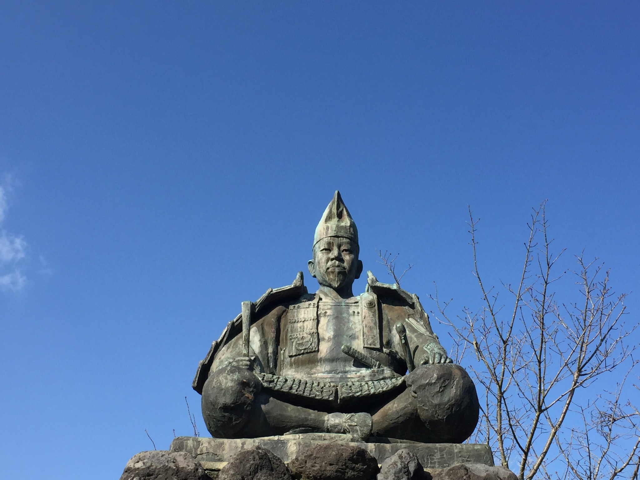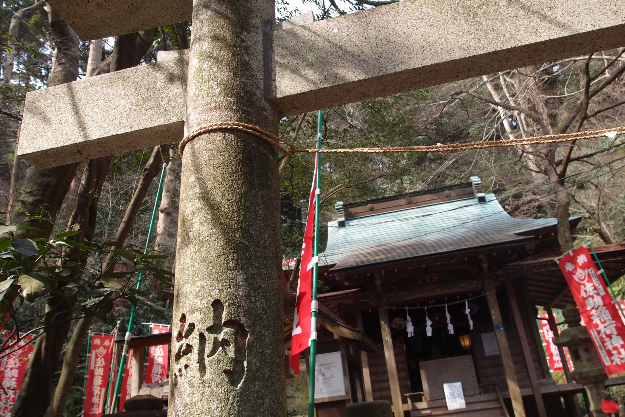 The woodland broaches a broad opening. To the right is Kuzuharaoka shrine’s entrance. While visitors wish for love on heart-shaped votive tablets, the shrine is also the historic execution site for a man who betrayed the Kamakura shogun. A monument to the first Kamakura shogun sits perched on a nearby hilltop in Genjiyama park.