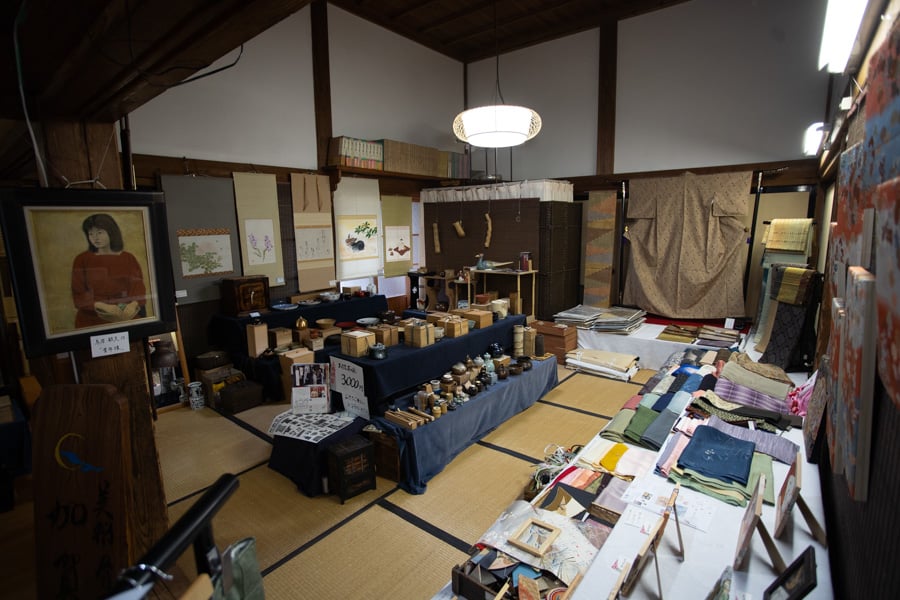 Zufälligerweise fand am tag meines Besuchs eine Handwerksmesse im Tempel statt, auf der sich lokale Handwerker aus Murakami versammelten, um kleine Verkaufsstände in den Hallen und Räumden des Tempel zu errichten. Ich war besonders an einem Stand mit Antiquitäten interessiert, an dem es eine große Auswahl von Murakamis kultureller Vielfalt zu bestaunen gab. Genauer besah ich mir hier eine exquisite Sommer-Teetasse, die mit tiefblauen Farben und dem Zeichen des Handwerkers dekoriert war, der sie gefertigt hatte. Die Tasse ähnelt einer flachen Schale, so dass Tee in den Sommermonaten schneller abkühlen kann.