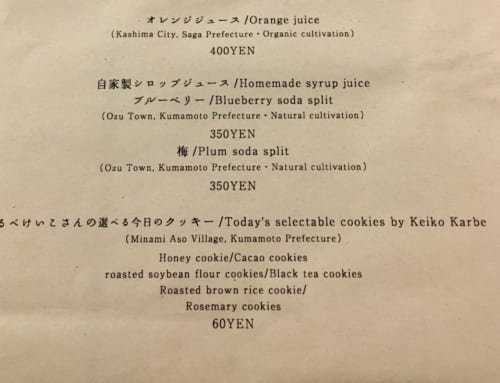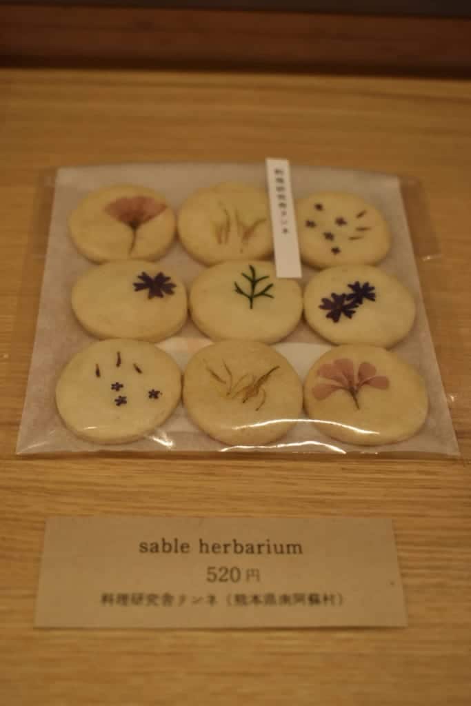 A packet of 9 small sable cookies caught my eye; each one was simply decorated with a flower from the Aso caldera and arranged on a piece of Japanese paper. They looked so delicate and had a subtle sweetness that went well with a hot cup of coffee. I chatted with the staff during my visit and they were very appreciative to have visiting tourists.