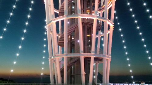 After admiring the Enoshima Sea Candle from a distance, you can climb onto the “Sunset Terrace” (free access, staircase near the toilet) to admire it from up close. Then, you can walk around the garden and discover the various luminous installations: arches of lights forming a tunnel that showcase bright chandeliers, tropical trees decorated with colorful lights, large spheres of light floating above the head…