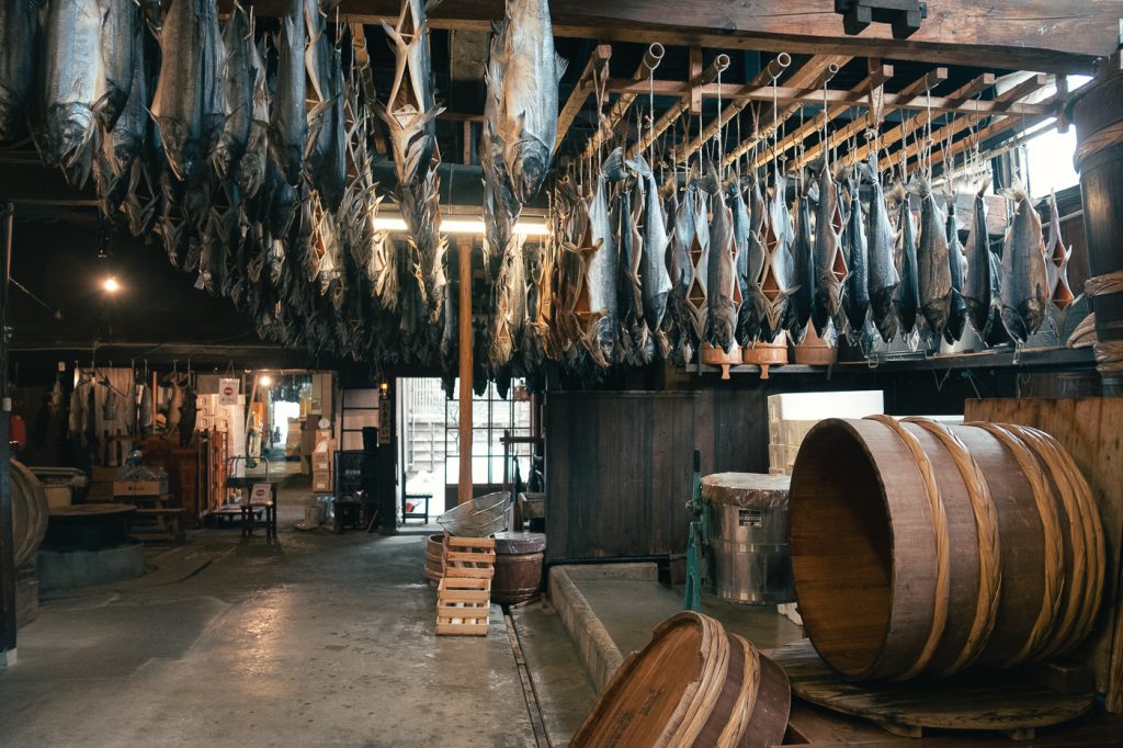 Los ríos y costas de Murakami están repletos de salmón, un pescado muy popular en Japón. Es por este motivo por el que la ciudad se ha convertido en la capital mundial del salmón. En el corazón de Murakami nos encontramos con uno de los carteles más antiguos del mundo que anuncian la venta de salmón seco: el de Kikkawa.