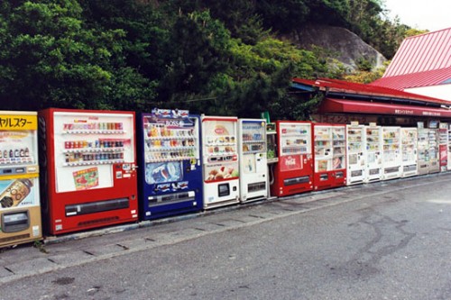 En la calle o en estaciones de metro y tren urbano, así como en algunos vestíbulos de edificios y centros comerciales, no es extraño encontrarse con máquinas expendedoras que vendan paraguas, baterías, cigarrillos, máscaras (de esas que utilizan los japoneses cuando están resfriados), chips de teléfono móvil con paquete de datos para los turistas, memory cards para tu cámara de fotos, vasos de plástico, juguetes pequeños (llamados gachapon) y hasta indumentaria casual (ropa interior, corbatas, camisetas). En las entradas de algunos templos, aunque no siempre, puedes llegar a encontrar máquinas que vendan amuletos de la suerte, flores y pequeños papelitos con predicciones sobre tu futuro.