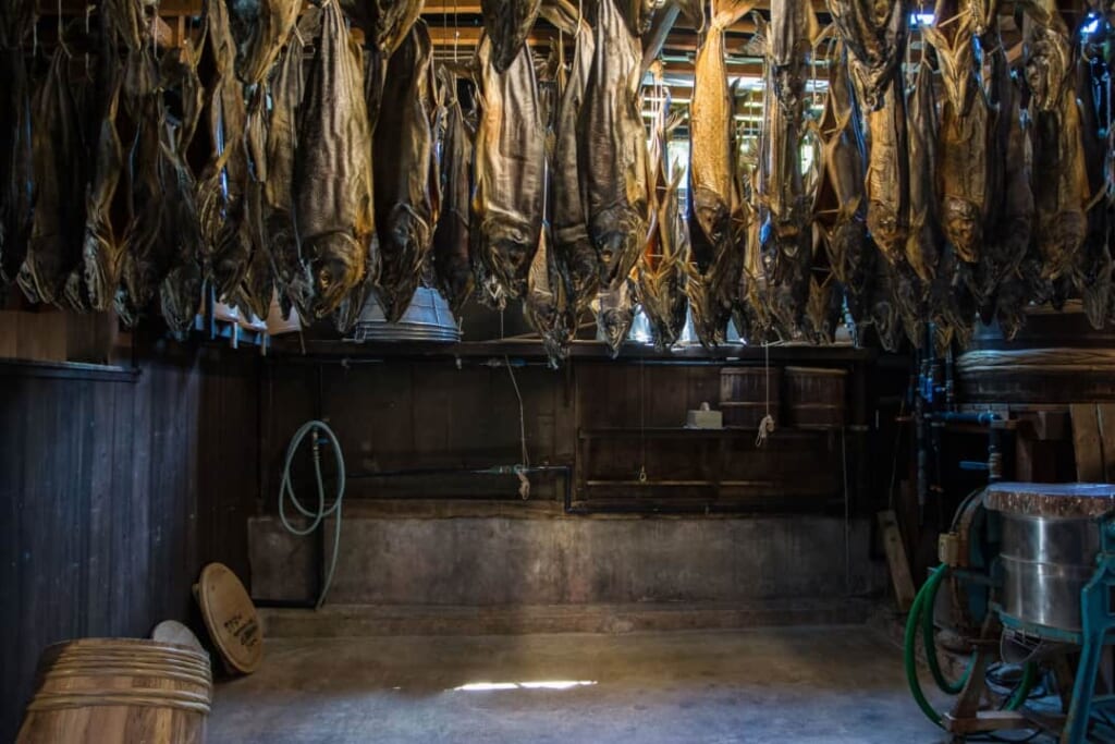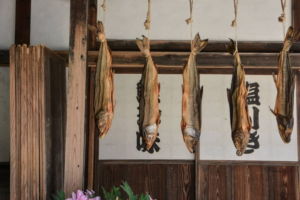 En su interior hay un puesto de salmón y un ‘tendedero’ con más de 1000 salmones, colgados en la parte posterior del edificio para que se sequen. En Kikkawa se utiliza una técnica de secado tradicional propia de Murakami denominada shiobiki, que consiste en tener siempre una ligera corriente de aire frío en la trayectoria del salmón. Una vez seco, se vacía el pescado y se le añade sal para preservarlo.