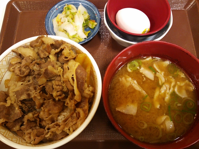 The fierce competition between gyuudon chains and their aggressive expansion in Japan have made gyuudon, or “beef rice bowl,” a natural alternative to other local fast food options. The apparently healthier choice of gyuudon is often ordered in a set with miso soup and pickles, and is priced just around the same as western style fast foods – which, in my opinion, makes gyuudon more attractive if you are looking for something quick and filling, especially on cold winter days.