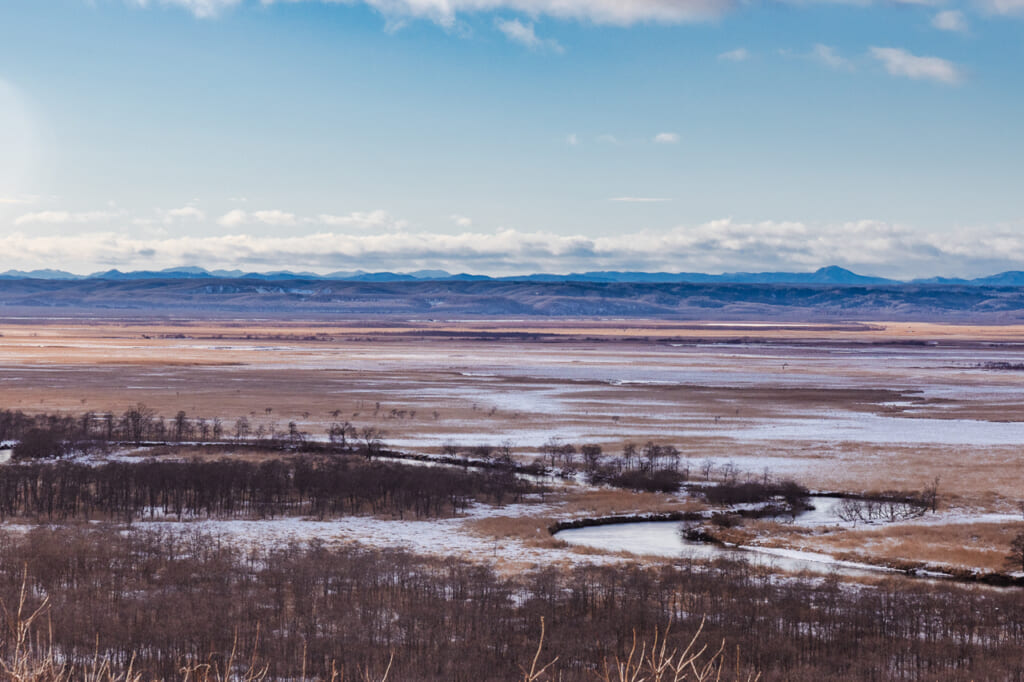 From there, we descended southward to the famed Hosooka Observatory, one of the best viewpoints of Kushiro Wetlands. The sheer vastness was staggering. Below us, the Kushiro River meandered lazily through the open marshlands, disappearing into the distance. We stood in silence, captivated by the stark beauty of the scene, the cold biting at our fingertips as we photographed the ethereal winter landscape.