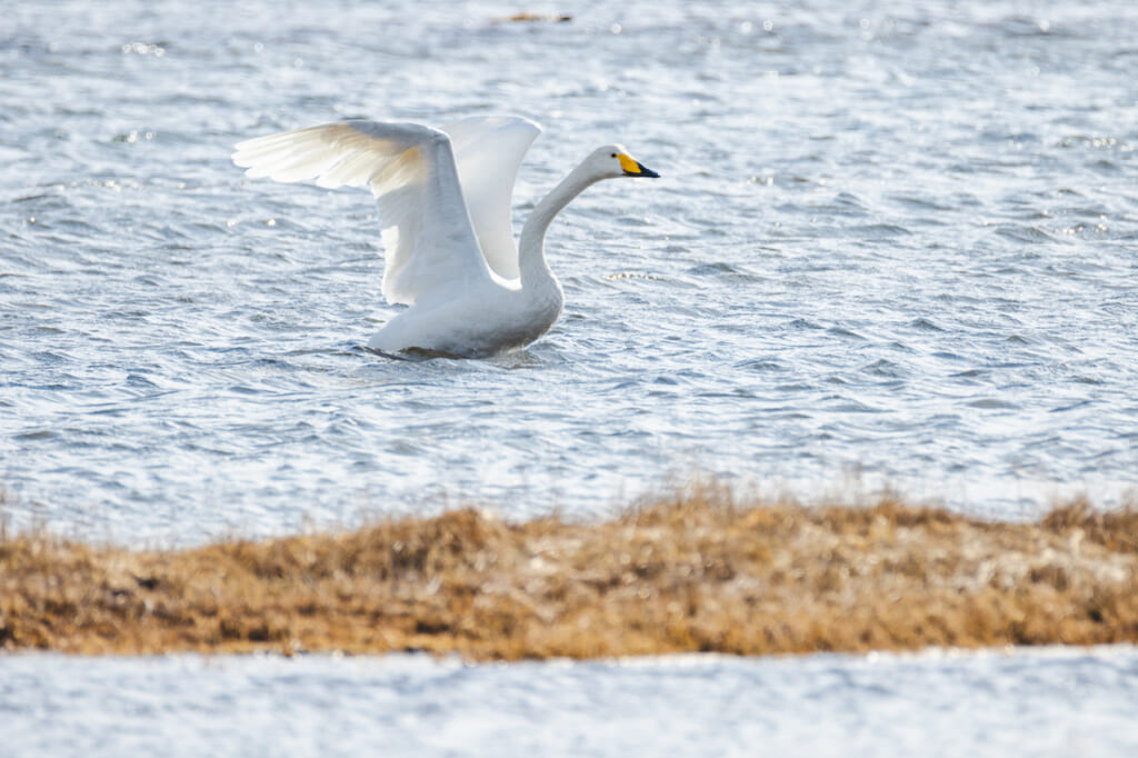 Our final stop took us south to Shunkunitai, a vast coastal wetland in Nemuro that serves as a crucial winter habitat for migratory birds. Unlike other areas, the land here was not blanketed in snow, and the landscape featured sand bars stretching into the distance. The marsh areas, however, had frozen over, creating an alien landscape with dead trees protruding from the ice. In the icy waters, we spotted local geese, braving the cold as they searched for food. Walking through this serene, otherworldly environment was a peaceful and humbling way to finish our journey.