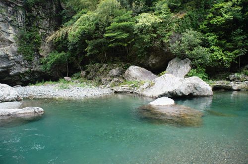 Le deuxième endroit où j’ai pu m’émerveiller du bleu de la rivière Niyodo est la vallée de Yodo (安居渓谷). L’endroit est magnifique, et l’on peut y sentir la puissance de la nature.