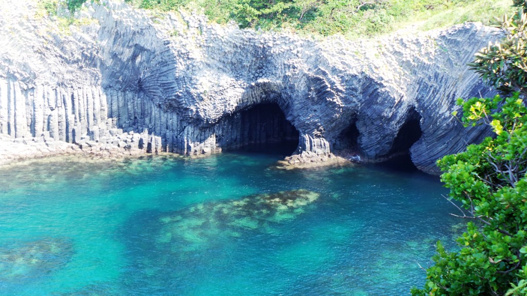 Classées « Monument naturel national » les sept grottes Nanatsugama sont nées de l’érosion des vagues sur le plateau de lave de basalte. Elles s’élèvent dans une eau turquoise et translucide belle à couper le souffle.