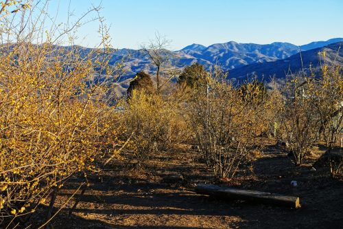 Pour poursuivre sur cette magie, en prenant le funiculaire situé à une vingtaine de minutes de marche de la gare de Nagatoro, vous profiterez d’une splendide vue panoramique sur la vallée, du haut des quelques 497 mètres du Mont Hodo. En plus d’offrir une vue imprenable, le Mont Hodo est recouvert d’une multitude d’arbres à fleurs : pruniers, cerisiers, érables, azalées et chimonanthes (wintersweet, je trouve le nom Anglais davantage parlant pour les apprentis comme moi !). Lors de ma visite à la fin du mois de Janvier j’ai eu la chance de pouvoir me laisser enivrer par le doux parfum des chimonanthes, ces arbustes à petites fleurs jaunes.