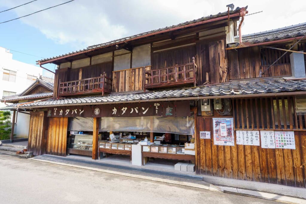 Près du temple, la boutique Kumaoka Kashiten (熊岡菓子店) est fière de proposer une spécialité originale : le katapan (カタパン, pain dur), le pain le plus dur du Japon.
