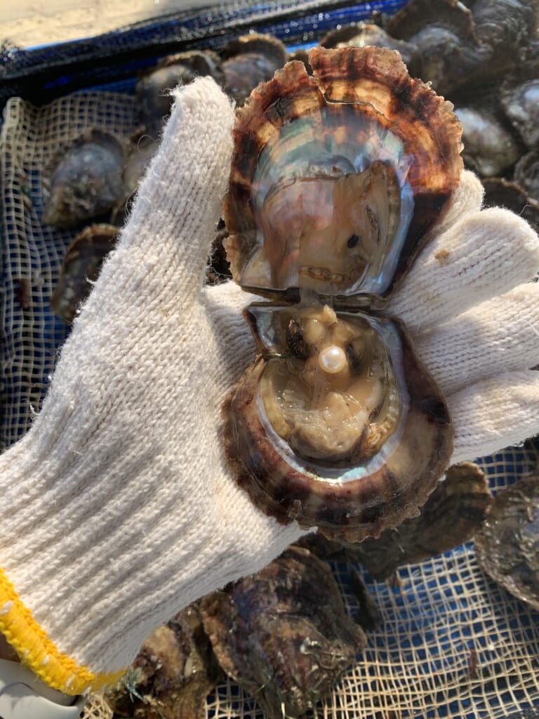 Entre décembre et janvier, c’est l’instant de vérité : le moment de la récolte des perles. On en découvre la taille, la forme, le coloris et l’éclat. Plus la perle est volumineuse et claire, plus la culture est risquée pour le coquillage qui l’accueille. Près de 30 % des huîtres donnent de belles perles, rondes et régulières. 1 % d’entre elles peuvent être classifiées comme hanadama, « fleur de perle », reconnue par un label comme le plus haut grade de qualité de perles Akoya au Japon. Entre le moment de la greffe et la récolte, la culture des perles prend près de 2 ans.