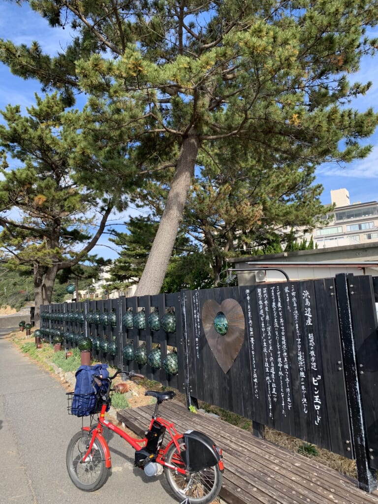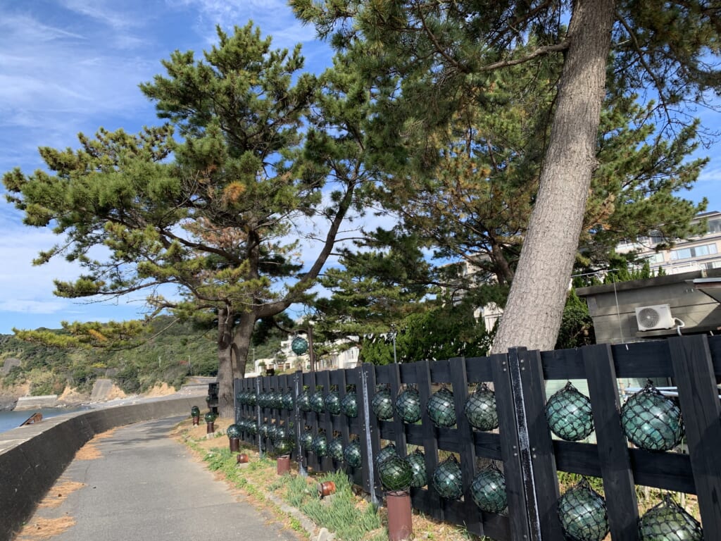 Le chemin côtier de Hamajima est surnommé « Bindama Road », du nom des flotteurs de verre utilisés pour la pêche pélagique, qui émaillent tout le parcours côtier.