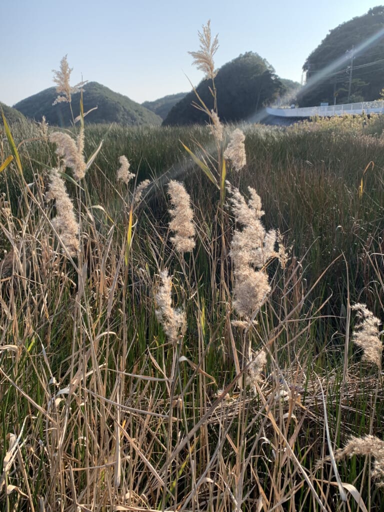 Derrière le littoral s’étendent des paysages champêtres. Ici et là, des champs de joncs épars dorés par le soleil dansent dans la brise et ploient sous le vent. Endémiques de la région, ces joncs japonais (juncus effusus), aussi appelés igusa (い草), poussent sur des sols marécageux comme autour de l’étang d’Oike, au sud-est de Shima. Ils servent à fabriquer les tatamis, ainsi que les zori (草履), les sandales japonaises. La paille d’igusa est en effet reconnue pour ses vertus bactéricides et fongicides.