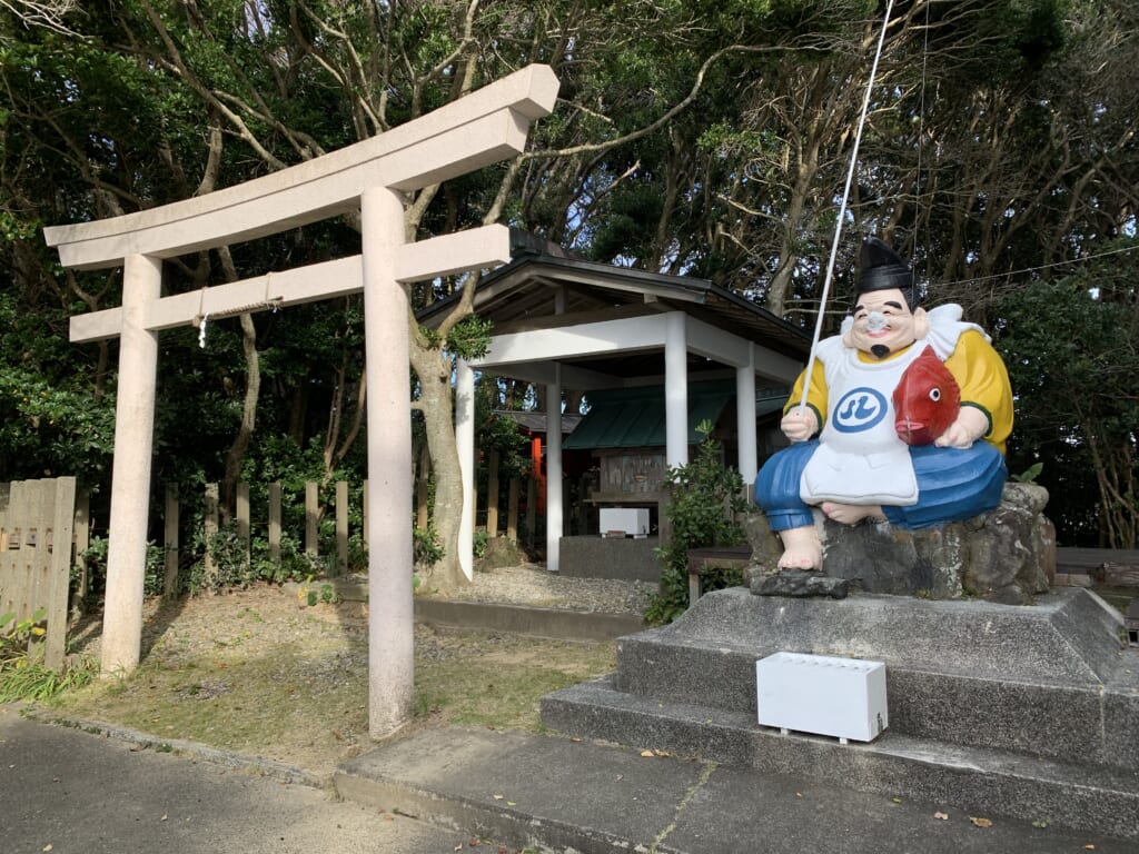 Ce parcours en bord de mer a pour première escale le sanctuaire shintoïste Hanakake Ebisu (鼻かけえびす), dédié à Ebisu, kami (dieu) des pêcheurs et des marchands. Il se cache dans un bois, sur une colline à deux pas de la mer. Ebisu y est vénéré depuis l’Antiquité. On vient y faire des vœux de prospérité. Dans le secret de la nuit, les pêcheurs viennent prendre un peu de matière au niveau du nez de la statue d’Ebisu, un élément porte-bonheur. Derrière cette statue, des torii vermillon sont jetés en enfilade sur le versant de la colline.
