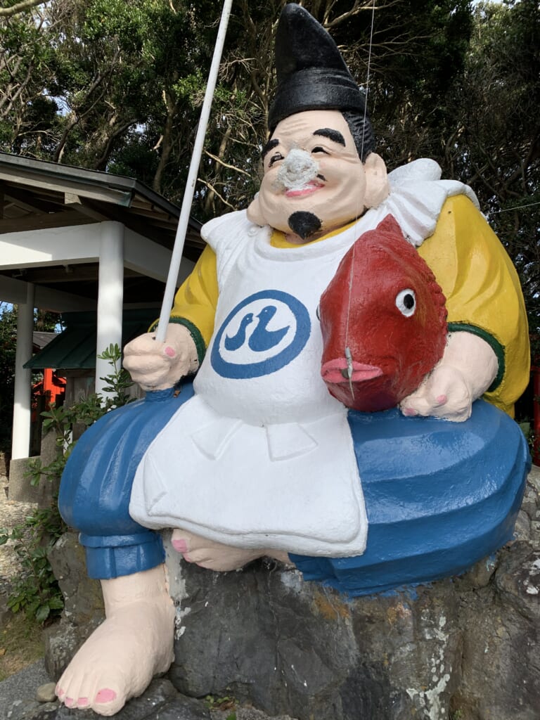 En retournant vers Hamajima, ne manquez pas la statue du homard Ise Ebi, symbole de Hamajima (浜島). Ce joyeux crustacé est coiffé de grandes antennes, et décoré de bindama.