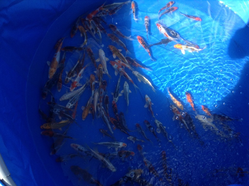 Les carpes « nishikigoï » ont, elles aussi, subi le terrible tremblement de terre« chūetsu » de 2004 dans leur région sur lequel je reviens dans l’article consacré à Yamakoshi. Alors que le village était complètement coupé du monde pendant des mois, que la grande majorité des habitations étaient détruites, les habitants ont tous dû être évacués. La décision a été prise d’en faire de même avec de nombreuses carpes. C’est ainsi que le 18 novembre 2004, un mois après le séisme, 450 carpes ont été évacuées par hélicoptère. Dans les jours et les semaines qui ont suivi, près de 5000 autres poissons ont été acheminés en des lieux plus sûrs. Après des années de travail, les lieux d’élevage ont été reconstruits et la production de carpes se porte aujourd’hui mieux que jamais dans le village.