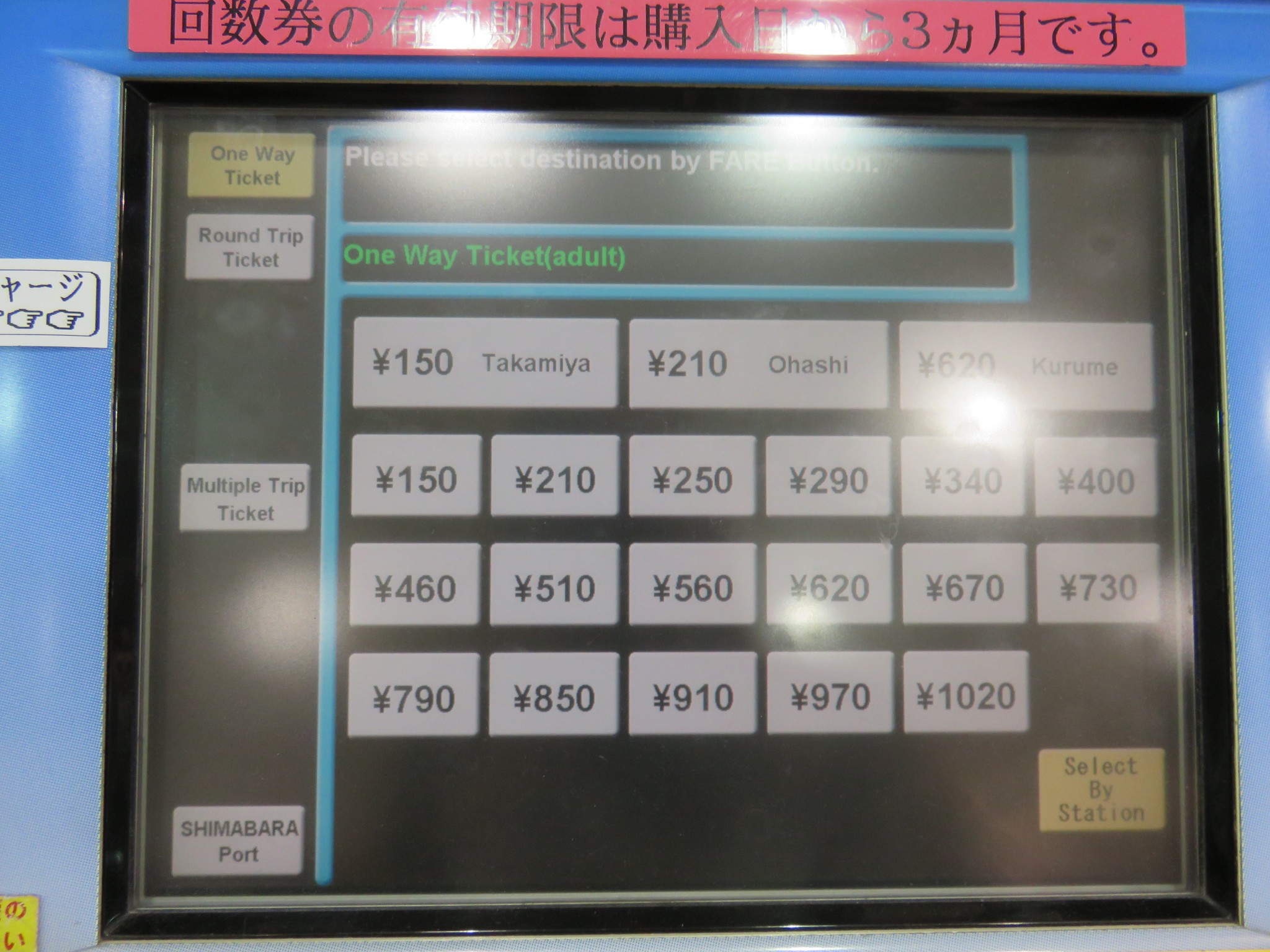 You can also select your ticket by searching for your destination. Other options like buying tickets for more than one person at once are also available. You can also use an IC card which can be topped up at one of the machines.