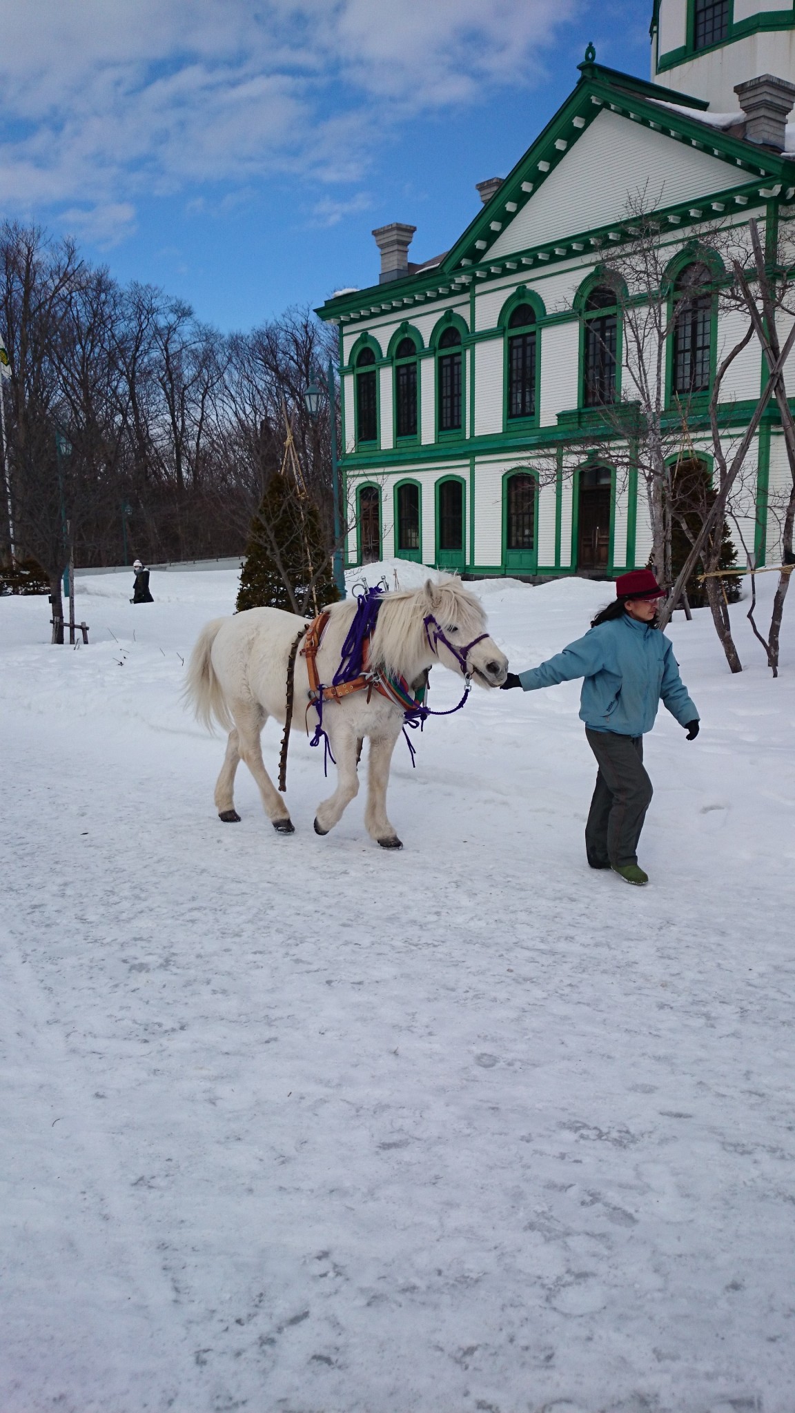 If you are visiting in winter, as you exit the station building there are some snow walking shoes. These can be used and are free of charge so help yourself and zoom around the sidewalks! It is a great deal of fun. To the left is the starting point for a horse and carriage that you can take a ride along the main street. This is a real good way to get into a historical frame of mind and also, if you understand Japanese, to have a tour guide provide you with some information along the way.