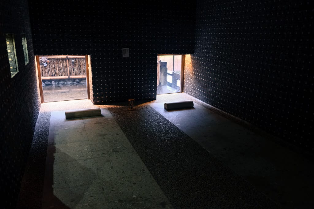 I chose the farthest onsen from the hotel of Sato no Yu, and was dropped off by the shuttle bus. Adjacent to the Kinosaki train station, it’s the largest public onsen in town. The two-story onsen includes a large main bath, a dry sauna, cold tub, and an outdoor waterfall bath on the second floor. After my bath, I head to my next onsen spot at Ichino Yu Onsen (一乃湯外観), where I sit under the dome of its popular cave-style onsen.