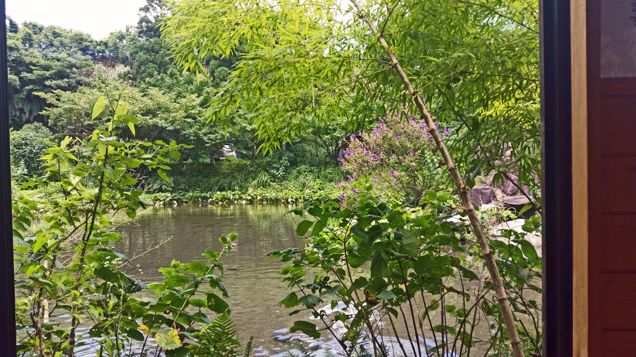 We ended up in Tosenkyo Masunoya, a local restaurant in Ibusuki. Hidden among decorative and colorful gardens, it overlooked a natural pond full of red, white, and yellow carp and a little footbridge that you cross to get to the restaurant. The whole place felt very tranquil and relaxing. The restaurant wasn’t busy as it was still early for having lunch. We were seated by the window – a perfect place to enjoy the stunning views outside, including a river where many trout live and are caught later for the meals.